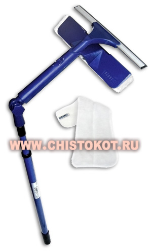Телескопическая ручка оснащена специальным фиксатором, с помощью которого вы сможете менять рабочий угол насадок. Еще одной особенностью является наличие двух насадок на ручке. Одна насадка сделана из микрорассеченного микроволокна, которая идеально моет окно во влажном виде, другая – имеет каучуковое лезвие, снимающее основную грязь и влагу с окон. Это значительно ускоряет мытье окон и экономит драгоценное время и силы.