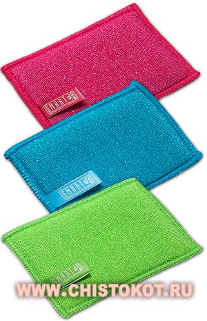 Микрофибра эффективно впитывает жидкости и загрязнения, а абразивная поверхность оборотной стороны предназначена для чистки всех видов посуды, кухонной техники и мебели.